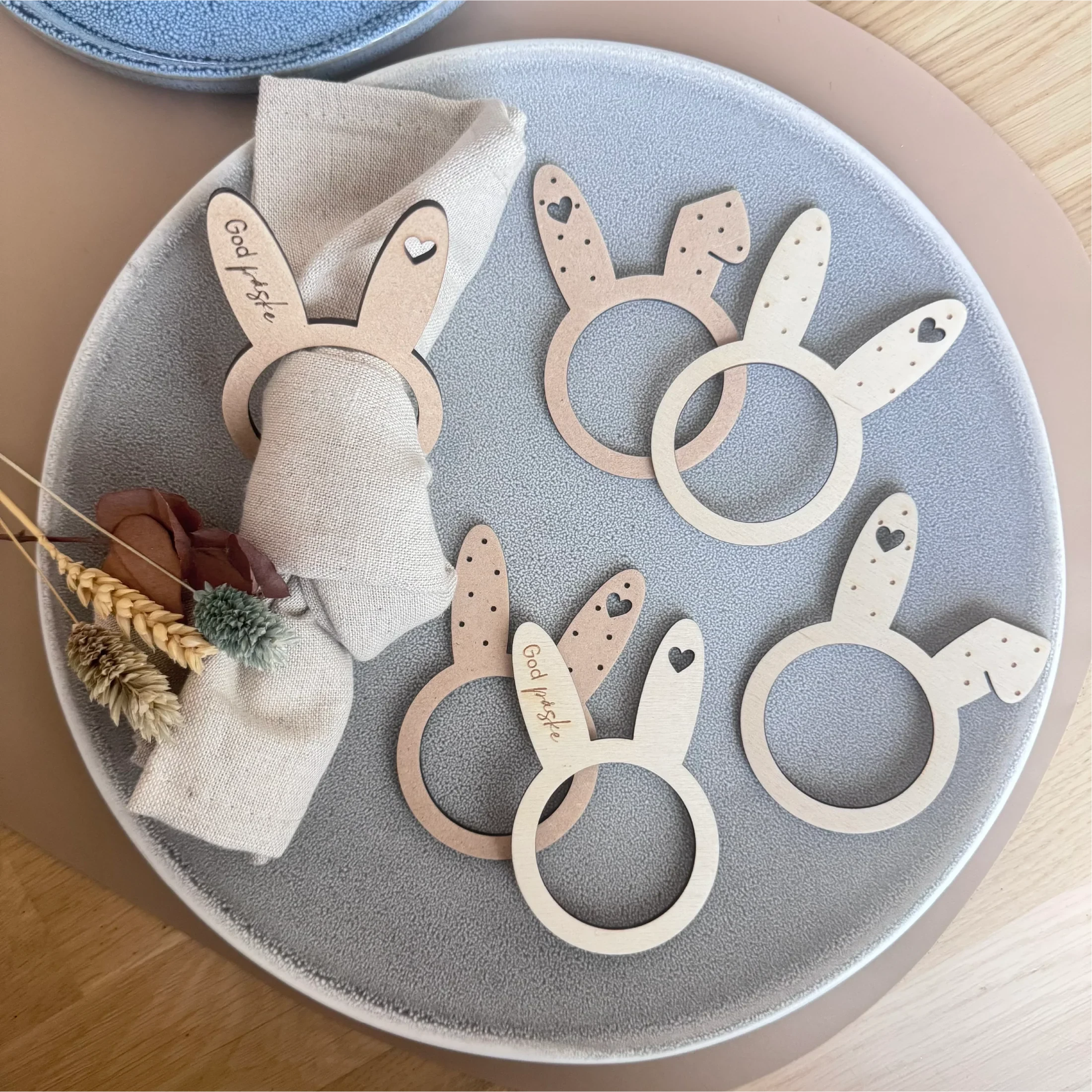 Servietringe i træ med kaninører – sæt med 6 stk.