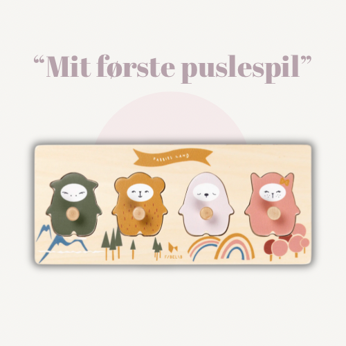Dette søde lille puslespil er lavet særligt til de mindste, der er i gang med at opdage deres finmotorik. De fire brikker har hver en lille knap, så de er nemme for små hænder at gribe fat i og tage op. Under brikkerne gemmer sig figurerne fra Fabelabs magiske univers – den nysgerrige kanin, den venlige drage, Bob og den søvnige dovendyr.